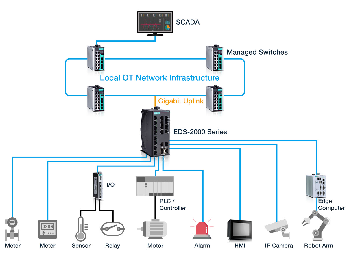 The EDS-2000 Series unmanaged switches can be used in most industrial automation field sites such as factory automation, process automation, oil and gas, intelligent transportation, energy management, and mining, which will help you get ahead with rapid and reliable network deployment.