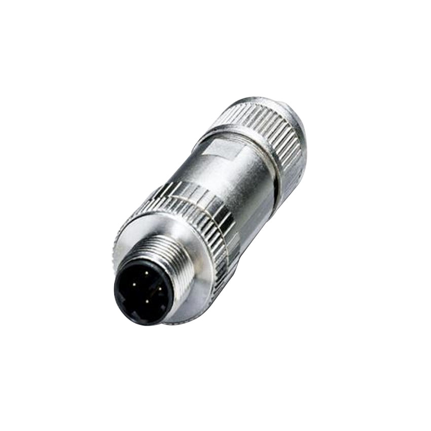 Bus system connector, plug, straight, 4-pos., M12 shielded, D-coded,fast connection system, cable diameter max. 8 mm